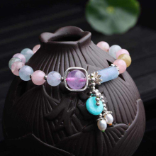 7nows 马达加斯加粉水晶招桃花运手串 天然