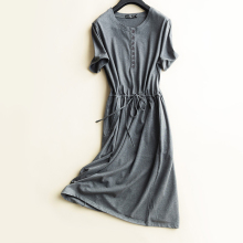 2017夏季 短袖 系带收腰中长款连衣裙 女