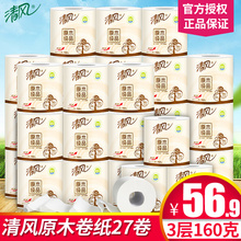 清风原木卷纸3层270段27卷家用卫生纸家庭装纸巾厕纸手纸整箱