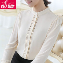 加厚雪纺衫女长袖2017春季新款加绒立领衬衫女百搭白色打底衫