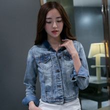 2017春夏新款长袖牛仔外套女短款女装修身气质磨破短外套上衣夹克