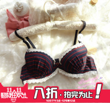 日系文胸日单纯棉田园风条纹蕾丝舒适全棉文胸女内衣70ABE75B