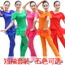 广场舞服装夏新款成人七分裤裙裤子拉丁舞套装练习短袖舞蹈服上衣