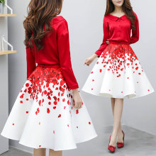 2017印花套装中长款雪纺长袖连衣裙女韩版两件套女装新款春装夏装