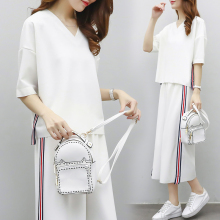 2017夏装新款女装时尚套装女韩版休闲裤子气质雪纺阔腿裤两件套潮