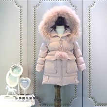 乐事南瓜韩版童装韩国童装女童冬季新款时尚中长连帽羽绒棉棉衣