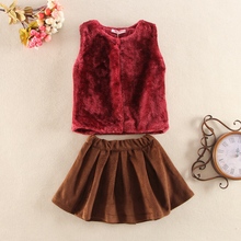 秋装新品2016童装 中小童女童时尚加绒毛背心+百褶裙两件套潮