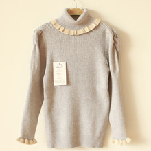 秋冬2016新款 女童毛衣 高领泡泡袖套头纯棉针织衫 女童打底衫