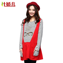 叶娇儿 孕妇秋冬装新品孕妇连衣裙 韩版假两件背带裙孕妇装 S176