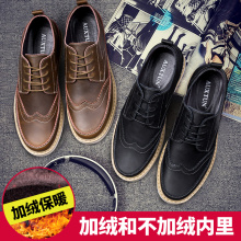 男鞋春季潮鞋2017新款真皮雕花系带圆头皮鞋英伦休闲鞋布洛克男鞋