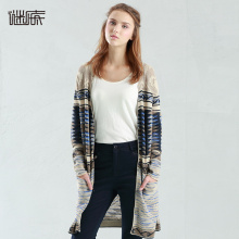 谜底女装2016春装新款艺术提花V领中长开衫外套女61MZ0438