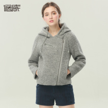 谜底女装2016冬装新款机车范连帽短款羊毛呢子外套女6DDD0658