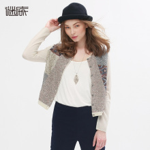谜底女装春装简约棉麻拼接针织西装短外套女51MW0154