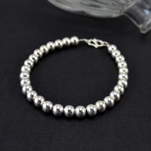 麻吉 简约经典 S925纯银光身圆珠手链 6-8mm男女适戴 定做长度