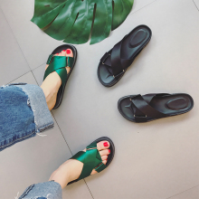 时尚百搭交叉带松糕凉拖鞋2017夏季韩版厚底休闲一字拖鞋女沙滩鞋