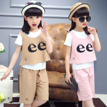 童装7女童短袖8两件套装2017新款9儿童10中大童短裤夏装12岁韩版