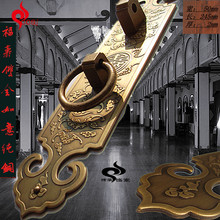仿古纯铜中式大门铜把手屏风门大拉手古典刻花黄铜拉环锁扣一对价