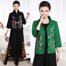 民族风秋冬女装短款绣花外套 大码女士 中老年唐装刺绣外衣短上衣