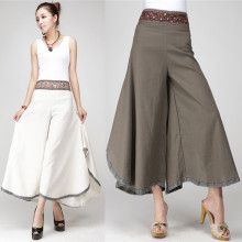 15夏民族风棉麻阔腿裤 女士宽松肥腿裤跳舞裤 阔腿裤长裙子裙裤女