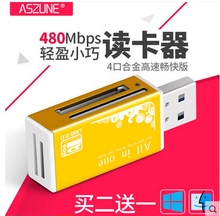 铝壳4合1铝壳金属读卡器 USB2.0多合一 高速万能SD TF读卡器 包邮