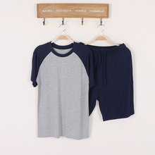 春夏男士插肩拼接莫代尔棉短袖短裤睡衣套装薄款休闲加大码家居服