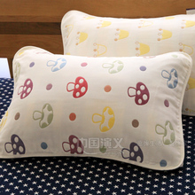出口品质 A类无荧光六层纯棉纱布蘑菇皇冠单人枕巾