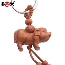 多吉米小猪汽车挂件挂饰钥匙扣链枣木雕刻生肖猪包包挂件生日礼物