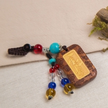 多吉米一生平安车钥匙挂件汽车钥匙扣链木雕生日礼物包包挂饰挂件
