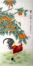 国画工笔画 四尺大公鸡 事事如意 工笔柿子 中国画 秦薇字画1025