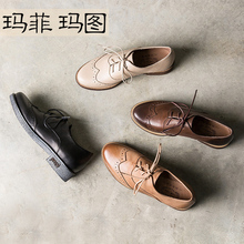 英伦学院风复古文艺手工女鞋真皮休闲圆头单鞋牛津鞋布洛克小皮鞋