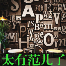 复古墙纸 3D立体怀旧英文字母理发店餐厅酒吧服装店KTV背景墙壁纸