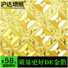 吊顶墙纸 菱形格子KTV金箔金色金黄色客厅酒吧过道天花板房顶壁纸