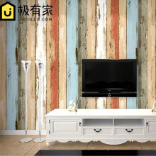 复古怀旧墙纸仿木板酒吧个性时尚店铺装修韩式女装服装店木纹壁纸