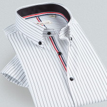 夏季丝光棉男士短袖衬衫2017新款白条纹衬衣修身韩版商务纯棉免烫