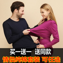 秋冬保暖内衣套装情侣款男女薄款单层纯棉圆领修身秋衣秋裤不加绒