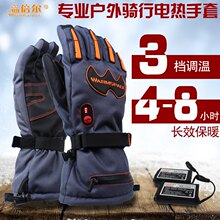 温倍尔锂电池充电加热手套冬季骑车登山滑雪可调温发热电热手套男