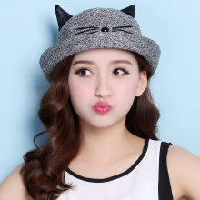 帽子女春夏季韩版可爱卷边猫咪耳朵渔夫盆帽休闲百搭遮阳小礼帽潮
