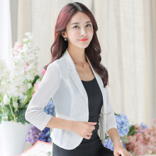 2017夏新款修身开衫短款七分袖小西装女薄网纱披肩防晒衫短外套