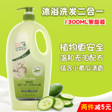 哈佛宝宝沐浴洗发二合一1300ML家庭大瓶装无泪配方小黄瓜清新乳液