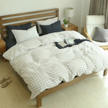 无印日式良品简约色织水洗棉四件套 全棉格子单双人床笠款套件