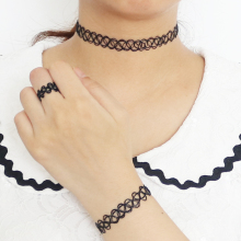复古纹身弹性双线短项链颈链男女刺青朋克项圈明星同款手链戒指