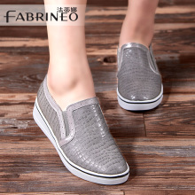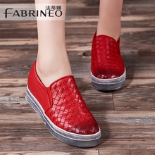 法蒂娜2017春季新款单鞋编织厚底松糕鞋平底乐福鞋真皮内增高女鞋