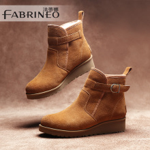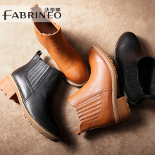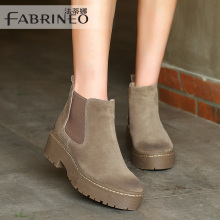 法蒂娜2016秋冬新款女靴欧美真皮短筒靴圆头厚底松糕女靴切尔西靴