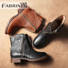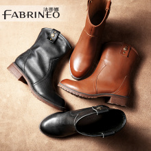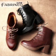 法蒂娜2016秋冬新款女靴粗跟复古短靴欧美真皮马丁靴圆头高跟女靴