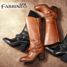 法蒂娜2016冬季新款长靴牛皮粗跟及膝靴女圆头骑士靴侧拉链高筒靴