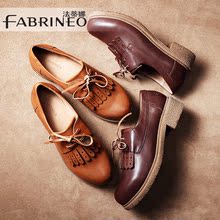 法蒂娜2017春季新款英伦学院风复古流苏小皮鞋平底牛皮低跟单鞋女