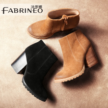 法蒂娜2016新款女靴高跟短靴女粗跟单靴真皮及踝靴女式欧美马丁靴