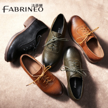 法蒂娜2017春季新款布洛克牛皮平底牛津鞋复古英伦风小皮鞋单鞋女