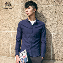 Deere Jane男士衬衫 日系长袖衬衣秋装 棉麻纯色打底衫男修身寸衫