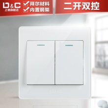 上德电源开关插座家用暗装雅白86型面板二开荧光双开双控开关